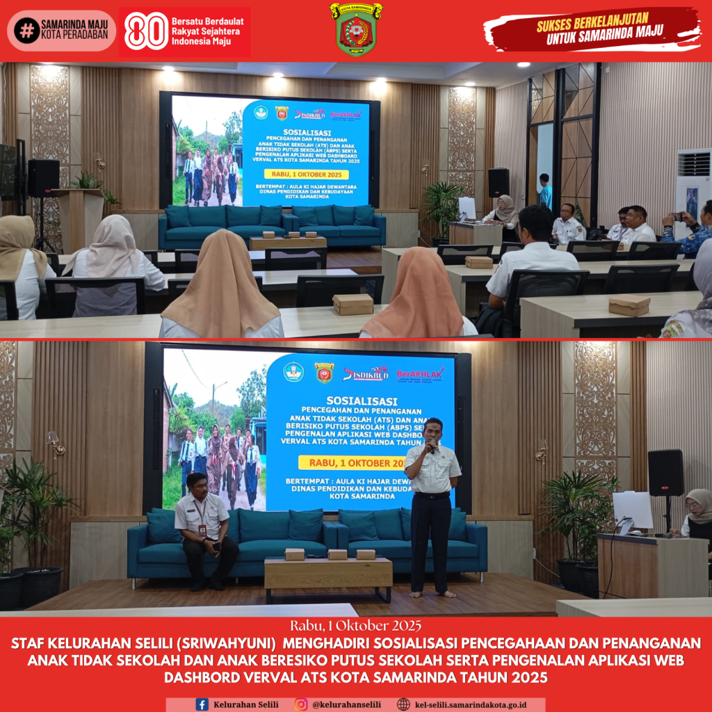 Staf Kasi Kesra Kelurahan Selili Menghadiri Sosialisasi Pencegahaan dan Penanganan Anak Tidak Sekolah dan Anak Beresiko Putus Sekolah Serta Pengenalan Aplikasi Web Dashbord Verval ATS Kota Samarinda TAhun 2025