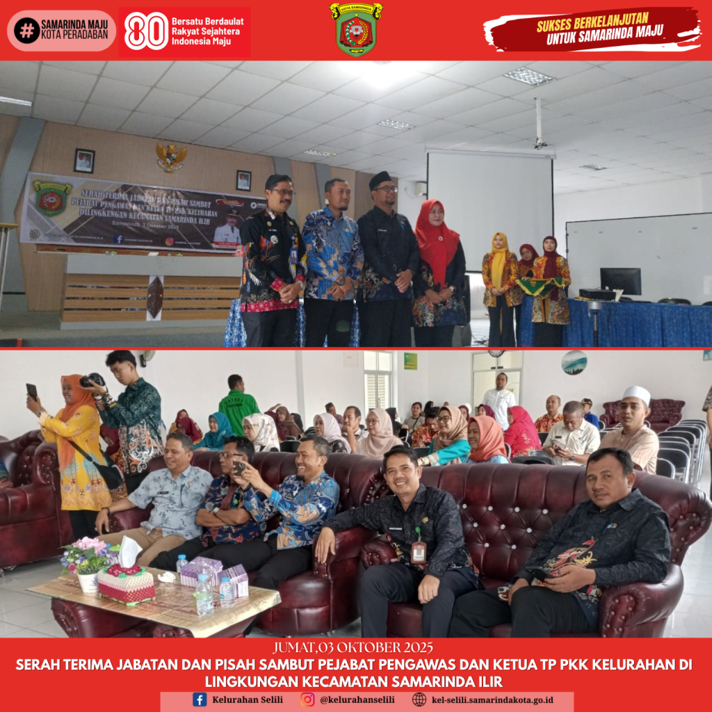 LURAH SELILI DAN SEKRETARIS LURAH MENGHADIRI ACARA SERAH TERIMA JABATAN DAN PISAH SAMBUT PEJABAT PENGAWAS DAN KETUA TP PKK KELURAHAN DI LINGKUNGAN KECAMATAN SAMARINDA ILIR (03/10/2025)