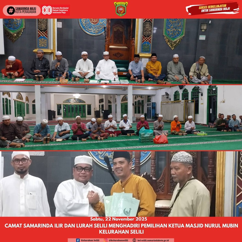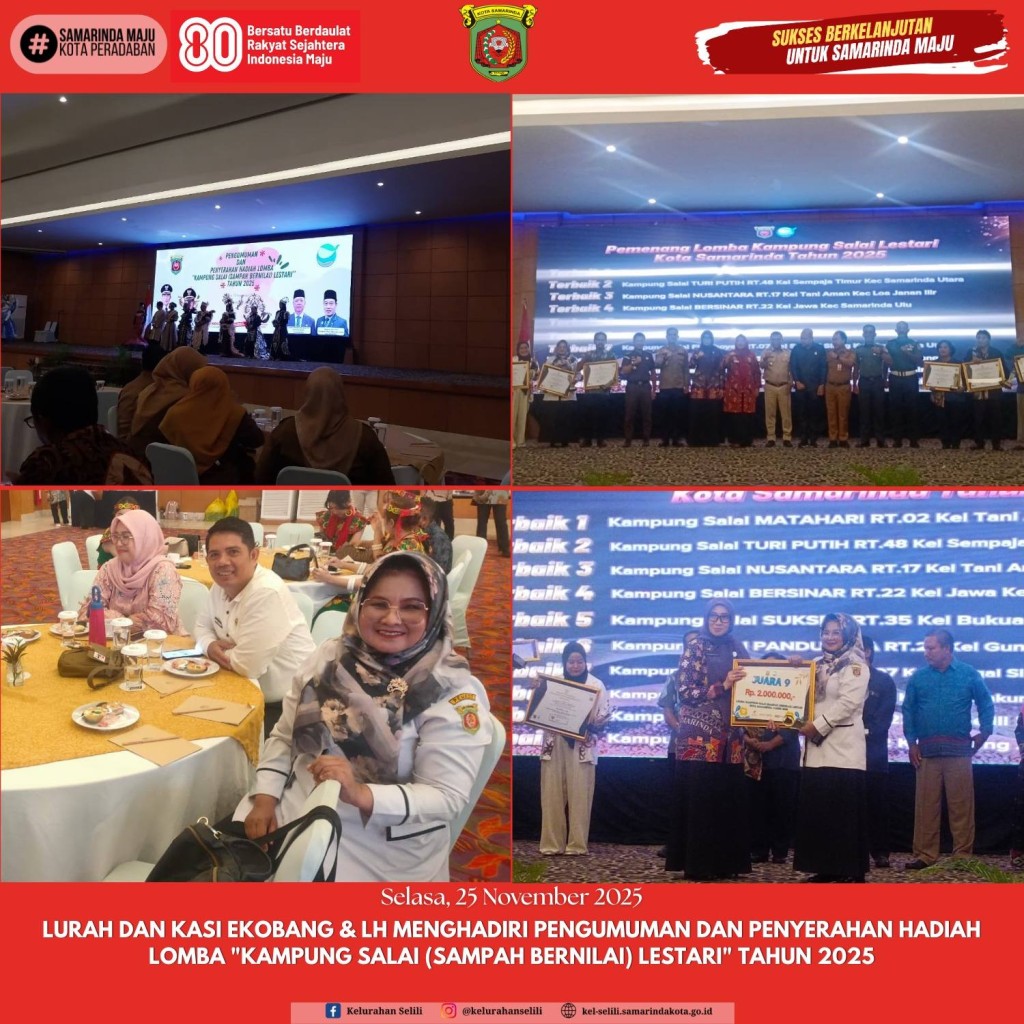 Lurah Selili bersama Kasi Ekobang & Lingkungan Hidup menghadiri kegiatan Pengumuman dan Penyerahan Hadiah Lomba “Kampung Salai (Sampah Bernilai) Lestari” Tahun 2025 yang diselenggarakan oleh Pemerintah Kota Samarinda. Acara tersebut merupakan bagian...