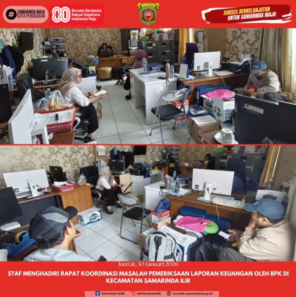 Koordinasi Pemeriksaan Keuangan BPK, Staf Kelurahan Selili Hadir di Kecamatan Samarinda Ilir (30/01/2026)