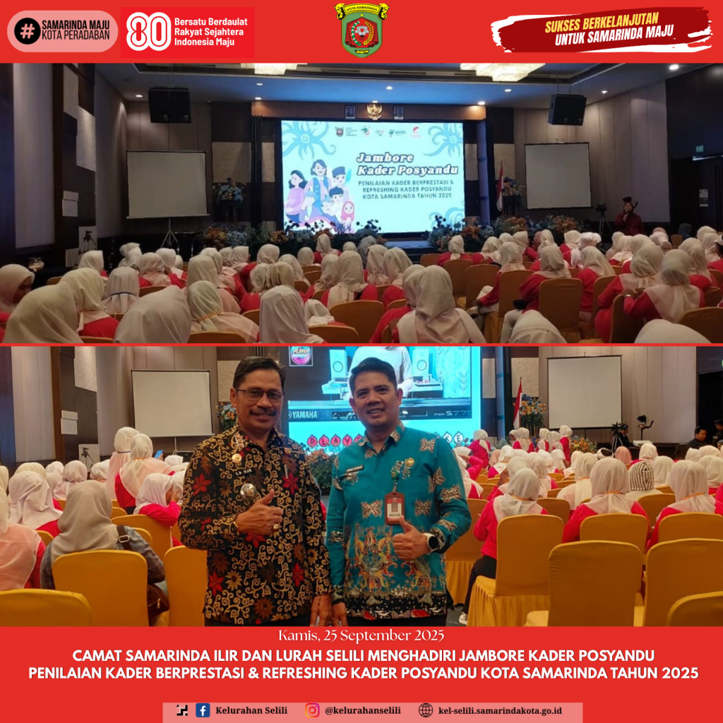 Camat Samarinda Ilir dan Lurah Selili menghadiri Jambore Kader Posyandu Penilaian Kader Berprestasi & Refreshing Kader Posyandu Kota Samarinda Tahun 2025 (25/09/2025)