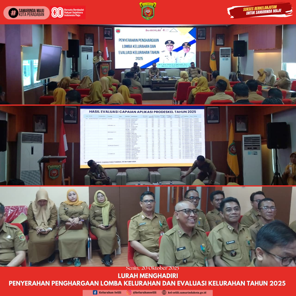 Lurah Selili Menghadiri Acara Penyerahan Penghargaan Lomba Kelurahan dan Evaluasi Kelurahan Tahun 2025 (20/10/2025) October 20, 2025 Lurah Selili Hadiri Acara Penyerahan Penghargaan Lomba Kelurahan dan Evaluasi Kelurahan Tahun 2025 Samarinda – Senin (20/10/2025), Lu...